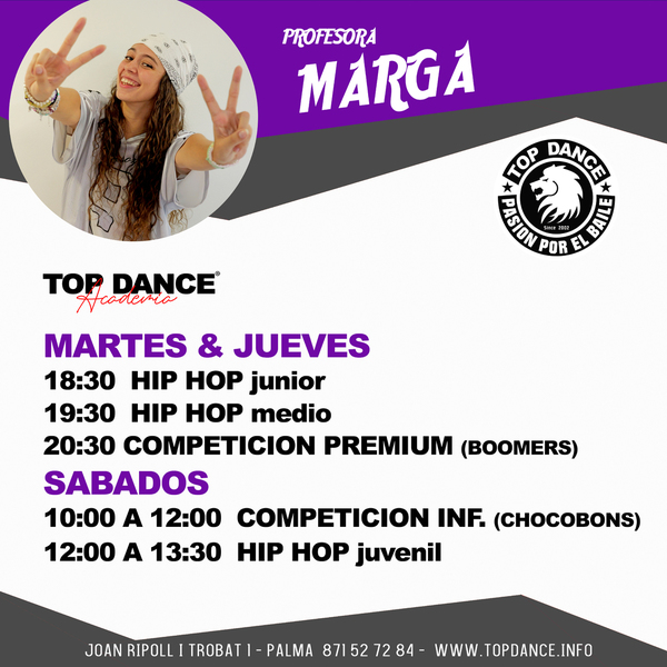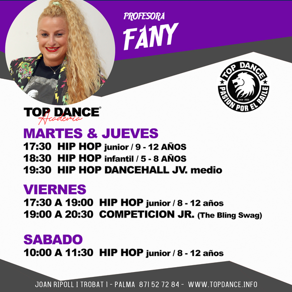 Situada en la ciudad de Palma de Mallorca en Baleares, la Academia Top Dance es la referencia del mundo del baile urbano de hoy. Clases